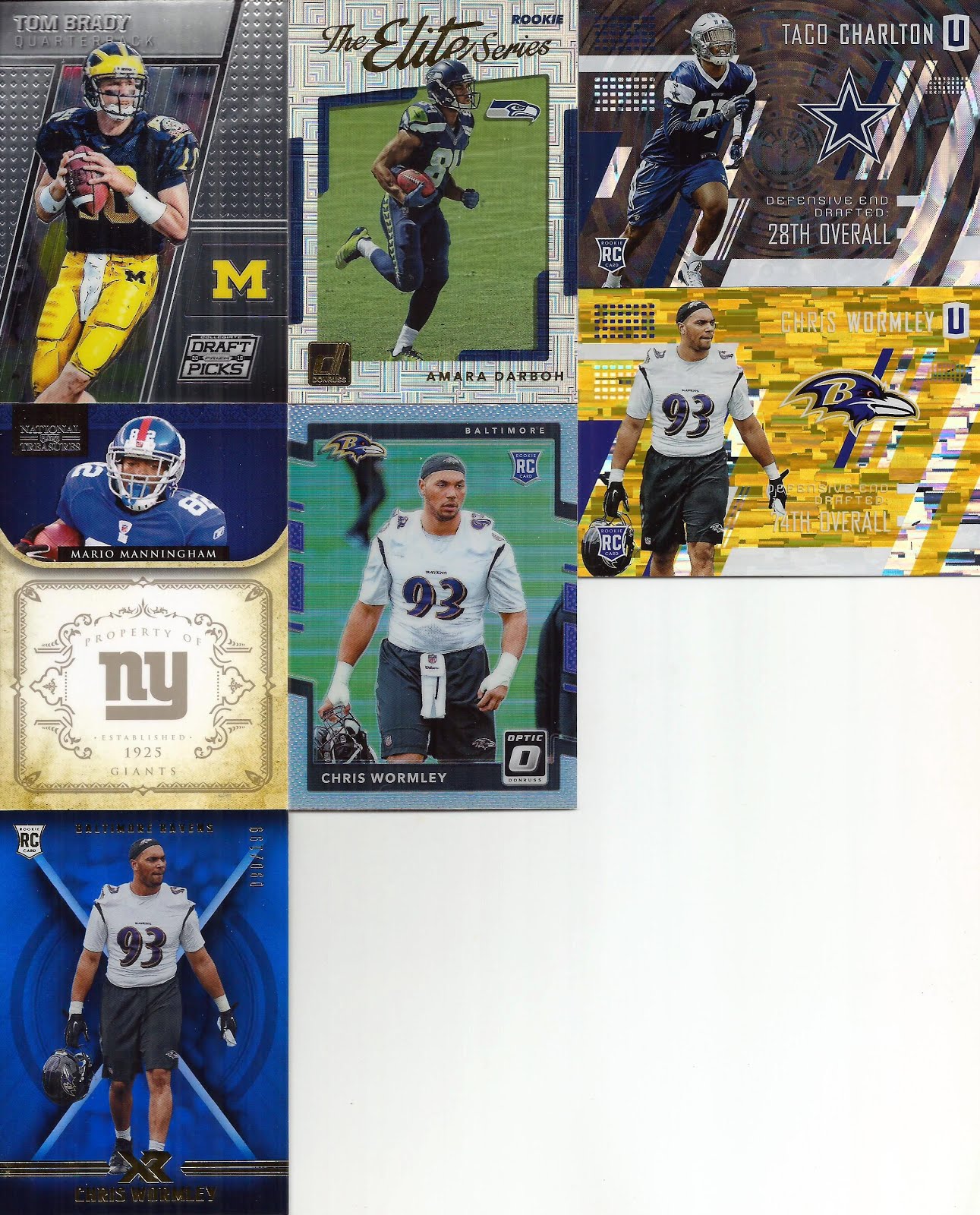 Baseball was the dominant sport but I did quite well with football, especially in the hits department. (More on that in a minute.) The group you see here includes new base cards of Brady and Manningham (numbered, to boot!), an insert of Amara Darboh to pair with the autographed version, and a trio of Chris Wormley parallels. I was also productive enough to knock another of first-round DE Taco Charlton's RCs off the list!