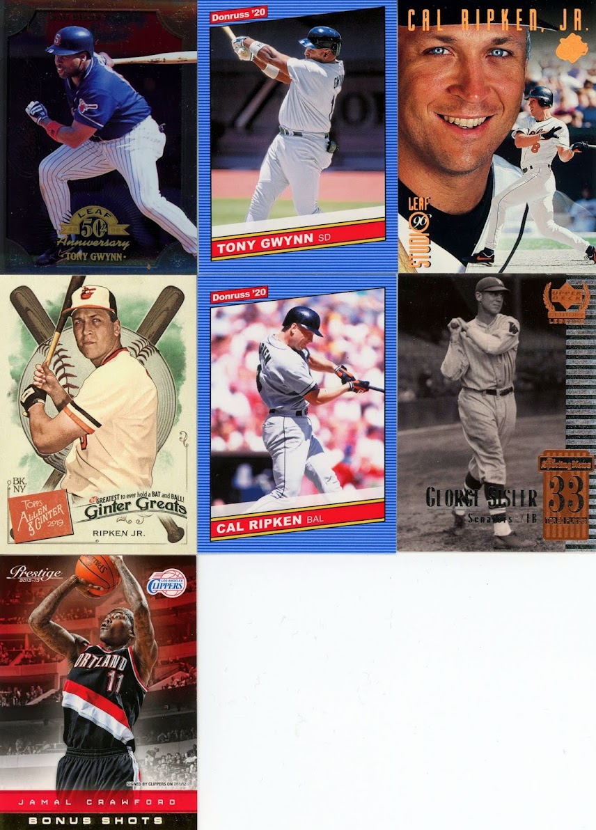 My lone personal pickup from the $0.50 was the '96 Studio Bronze Press Proof of Cal, and I was pretty excited to nab that parallel, one of "just" 2000 copies made! The foil's a bit messed up on the back but that doesn't bother me as I'm a huge fan of that year's design, and the product in general. To that I added a 2019 A&G Ginter Greats insert and 2020 Donruss base (I already had the variation of this one) for a dime each.