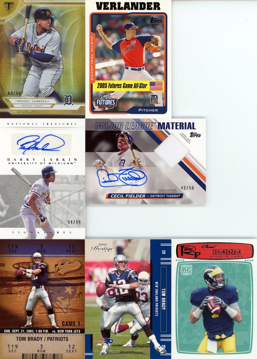 As if all of that wasn't enough, he even balanced out the envelope a bit with a few football cards. QB Tom Brady appears courtesy of 2003 Fleer Authentix (and its ticket motif) and 2005 Prestige, which is one of the product's nicer designs. To cap things off he threw in another signal-caller, blog favorite Chad Henne, as seen on his 2008 Topps Rookie Progression RC while wearing Michigan's iconic uniform.
